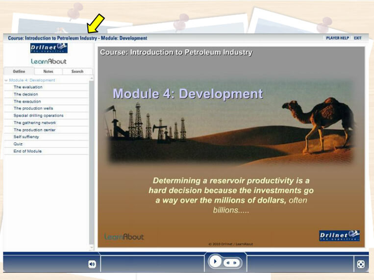 Осуществляемое, под руководством инструктора, изучение курса «Введение в нефтегазовую промышленность» (IPI), которое мы сейчас предоставляем, это пример онлайнового курса, который может проводиться с помощью системы управления обучением (Learning Management System-LMS).